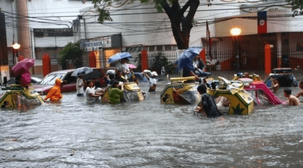 Image (right): Pedicab drivers wading through Ondoy’s flood. [Credit When in Manila]